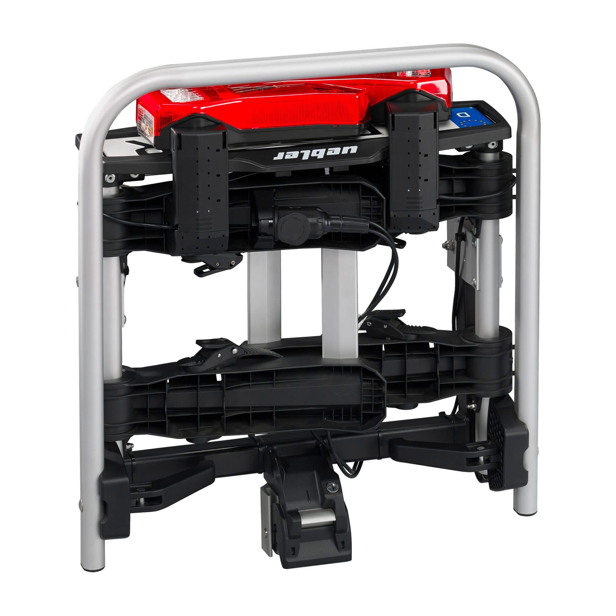 Der Träger ist leicht, lässt sich problemlos auf der Hängerkupplung von einer Person montieren und ist zusammengeklappt im Kofferraum zu transportieren. Der Preis ist sehr hoch.