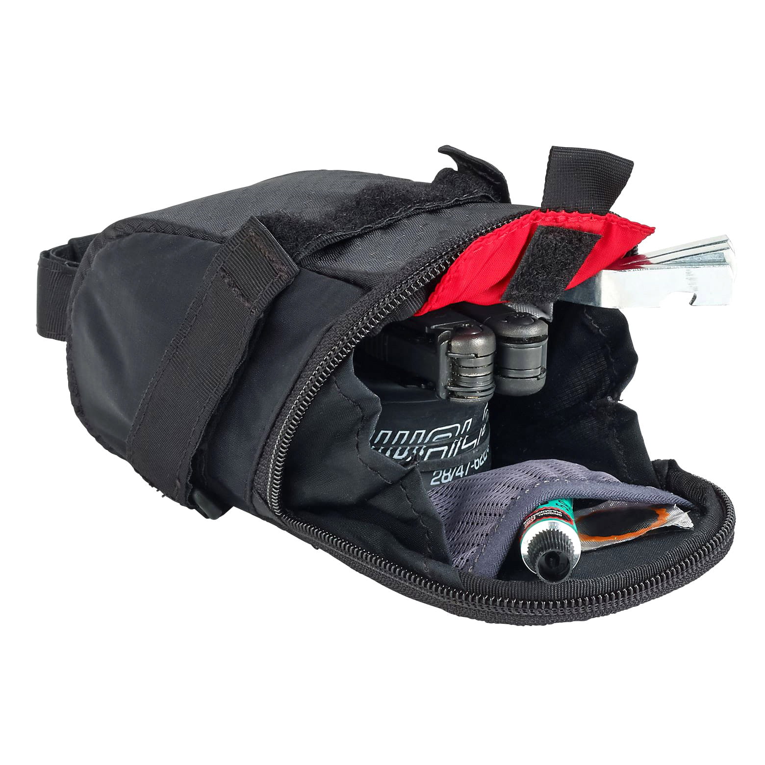 Für Minimalisten. Die leichte Satteltasche bietet mit zwei kleinen Innentaschen Platz für Dein Notfallset.
