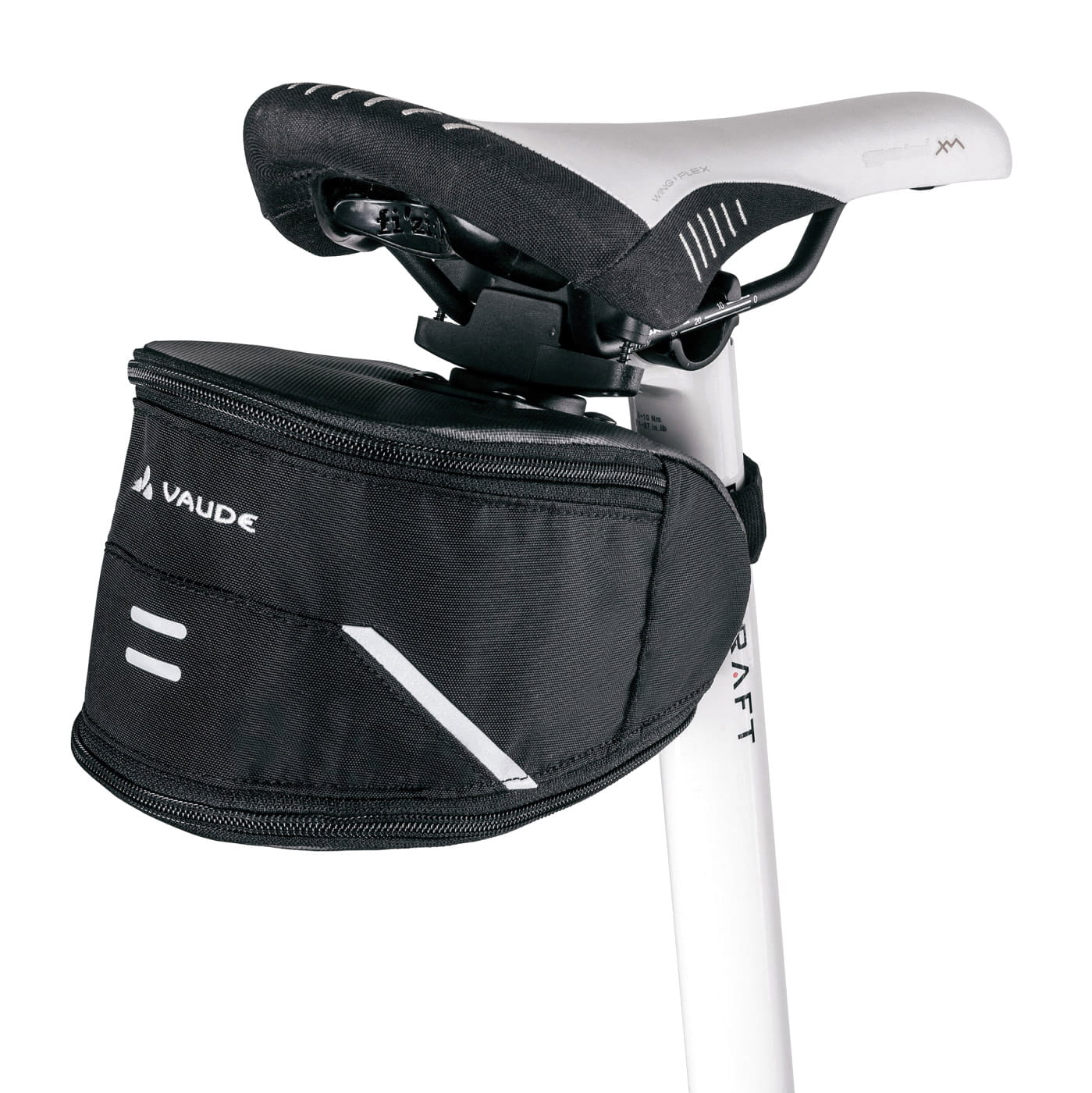 Die funktionelle Vaude Tool Satteltasche aus bluesign®-zertifiziertem Material wird per Twist-Adapter befestigt und kann bei Bedarf im Volumen erweitert werden. Sie bietet Stauraum für Ersatzschlauch, Werkzeug und Reifenheber bis hin zur dünnen Regenjacke, Energieriegel und Not-Groschen.