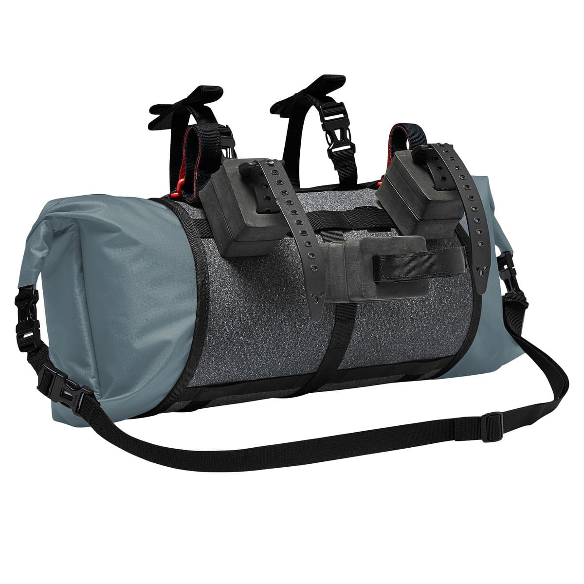 Der Packsack ist von beiden Seiten zugänglich und über Wickelverschlüsse wasserdicht komprimierbar und eignet sich hervorragend für leichtes Gepäck und einen Schlafsack. Über Packriemen auf der Oberseite kann zusätzliches Gepäck und sogar ein Zelt außen befestigt werden. Die Halterung des Packsackes passt zu allen Mountainbike-Lenkern und ist mit ihrer Breite von 30 cm auch mit allen gängigen Gravel- oder Rennradlenkern kompatibel. Durch die praktischen Abstandshalter und die in der Breite verstellbaren Fixierungen wird immer genügend Freiheit zu Brems- und Schaltzügen gewährleistet.